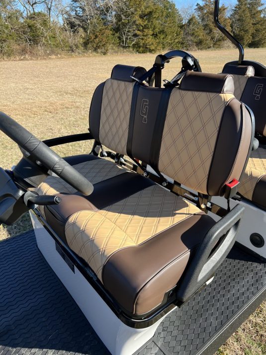 - Custom premium Tan/brown two tone upholstery with Brown stitching and piping (other colored upholstery also available)